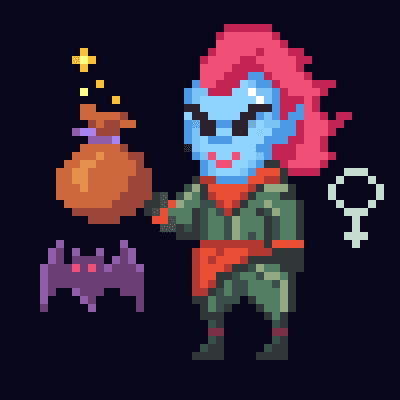 Many in the Forgotten Runes know the myth of Witch Evangeline, she who was touched by divine grace and makes the Sacred Pillars her home. Visitors to the Pillars sometimes whisper they could glimpse a flash of her azure skin or bubblegum pink hair out of the corner of their eye, but the moment they turn to look, there's nothing there. The urban legend goes: if you visit the Sacred Pillars on Halloween, make a gift offering of candy (she is particularly fond of Snickers, but only if you're not a cheapskate and offer the full size version), and ask for a trick, she will reach into her bag of tricks and bestow a blessing upon you. But beware, because Witch Evangeline's tricks are unpredictable, you might win the lottery the next day, or wake up to find yourself transformed into a frog.
