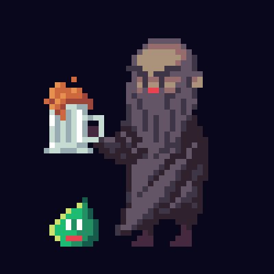 Amir searched longengly through the void. He searched for the perfect Hops. The Hops to hop all other hops. The India Pale Ale that would rule them all. One day, he found it, but the search had driven him mad. His beard had grown long, and his pet goo had grown weary. Now a days he tends a bar in a backwoods town crafting the perfect brews for any traveller that comes through. Every time they drink his IPA they exclaim it to be the greatest they ever had, but can never find their way back or remember where they bought it from. They just have a vague memory of the most delicious brew they ever tasted and are haunted by not being able to recall where they got it from.