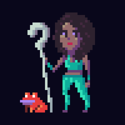 Faye of the Wild was born by a cabin near the forest. She was later abandoned by her parents at a young and had to fend for herself all alone, no one to help her. She however had a strong connection to the forest and learned how to survive off the plants in the wild. She picked up a stick, that is now her staff, and uses it to stir her concoctions in her Cauldron and to bonk the degenerates that view her in a preculiar way. She is accompanied by a frog named "Jerry" that keeps her senile from the loneliness of the forest.