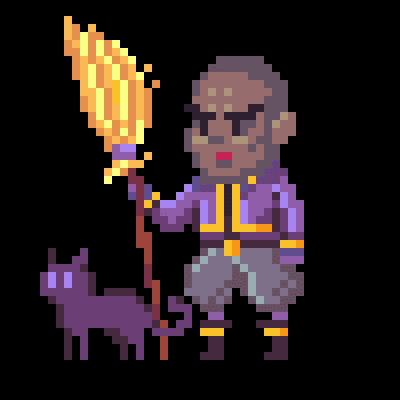 On his 77th birthday he was befriended by a Lucky Black Cat named Zeus when he kept him from drinking a lethal potion (by knocking it off the table) given to him by a deceitful Sorcerer. Zeus has saved Edge’s life on multiple occasions and remains his most trusted companion. However, Zeus is a bit of a thief, but Edge always makes him return the stolen treasures.