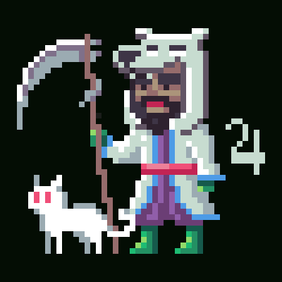 He also feels that his trusty scythe also gives off a certain aesthetic allure and mystique for the rare occasions that Angus (and Whiskers too, of course) actually go out and socialize with the rest of the Wizard world, whether that be in a simple tavern or library or one of the many towns that Angus will reluctantly go to if he is feeling like he wants to procreate.